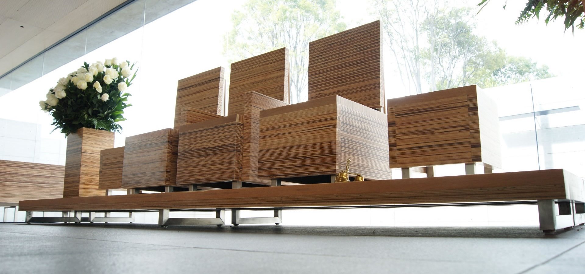 Mobiliario institucional y acabados arquitectónicos (volúmenes y enchapes), en fómica F=8..