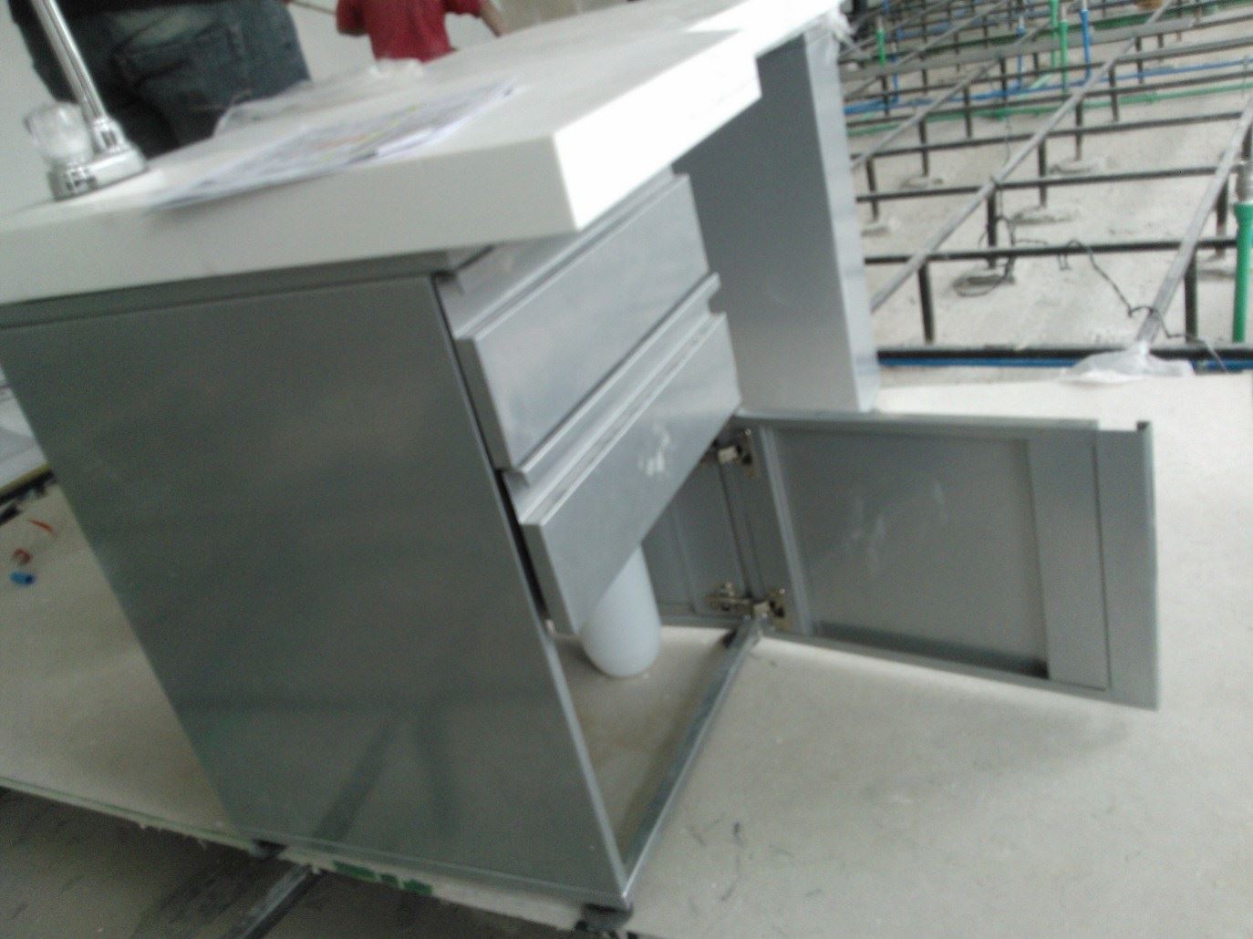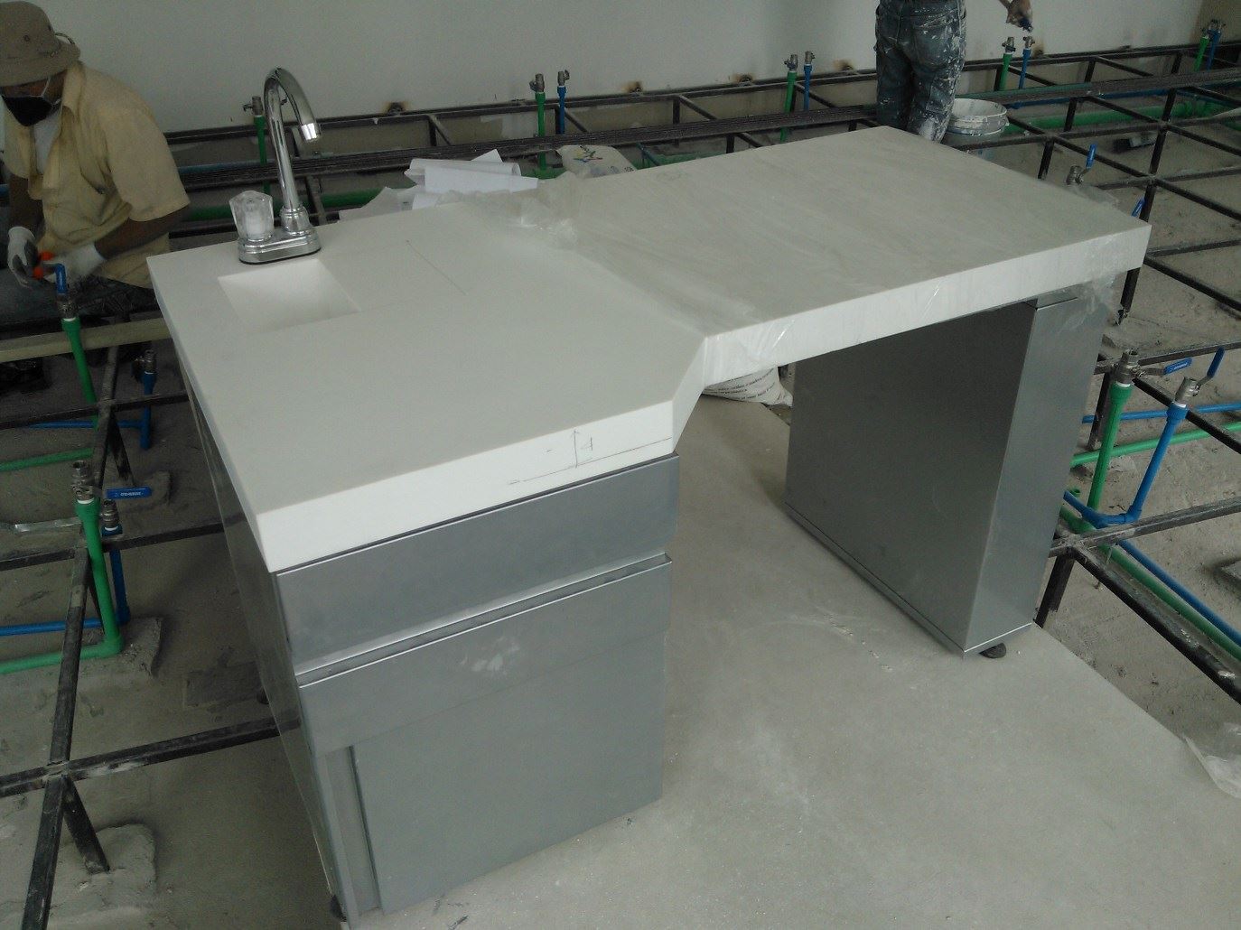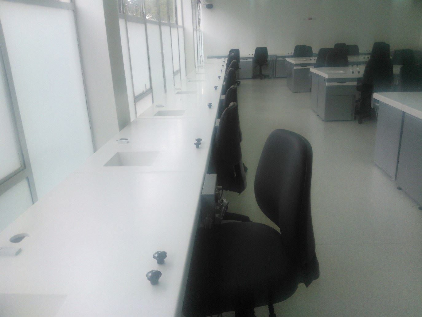 Muebles en lámina Cold Rolled, con fórmica especial o Corian con resistencia a químicos para laboratorios..