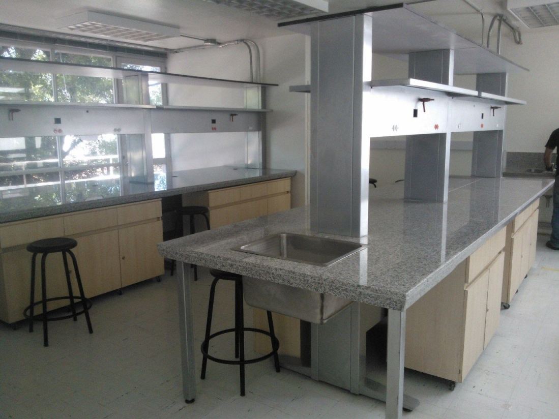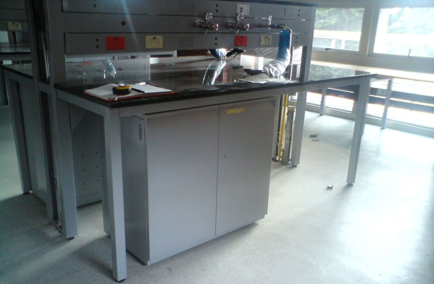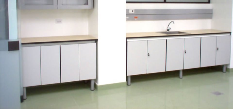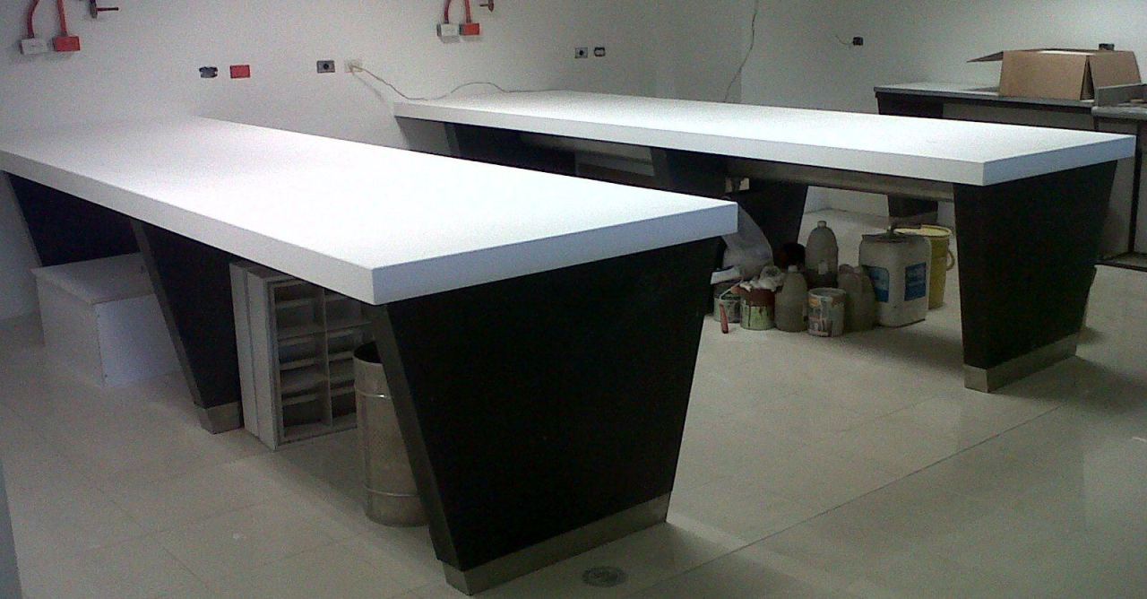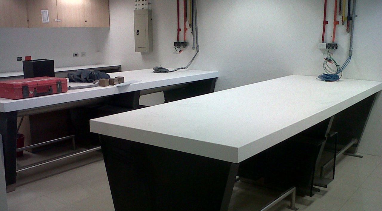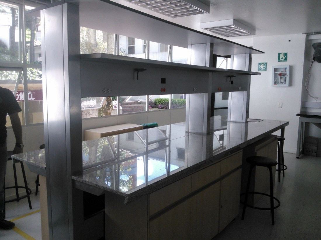 Muebles en lámina Cold Rolled, con fórmica especial con resistencia a químicos para laboratorios.