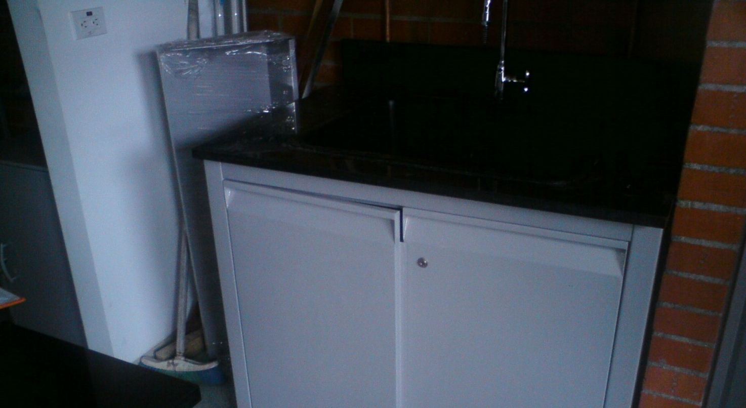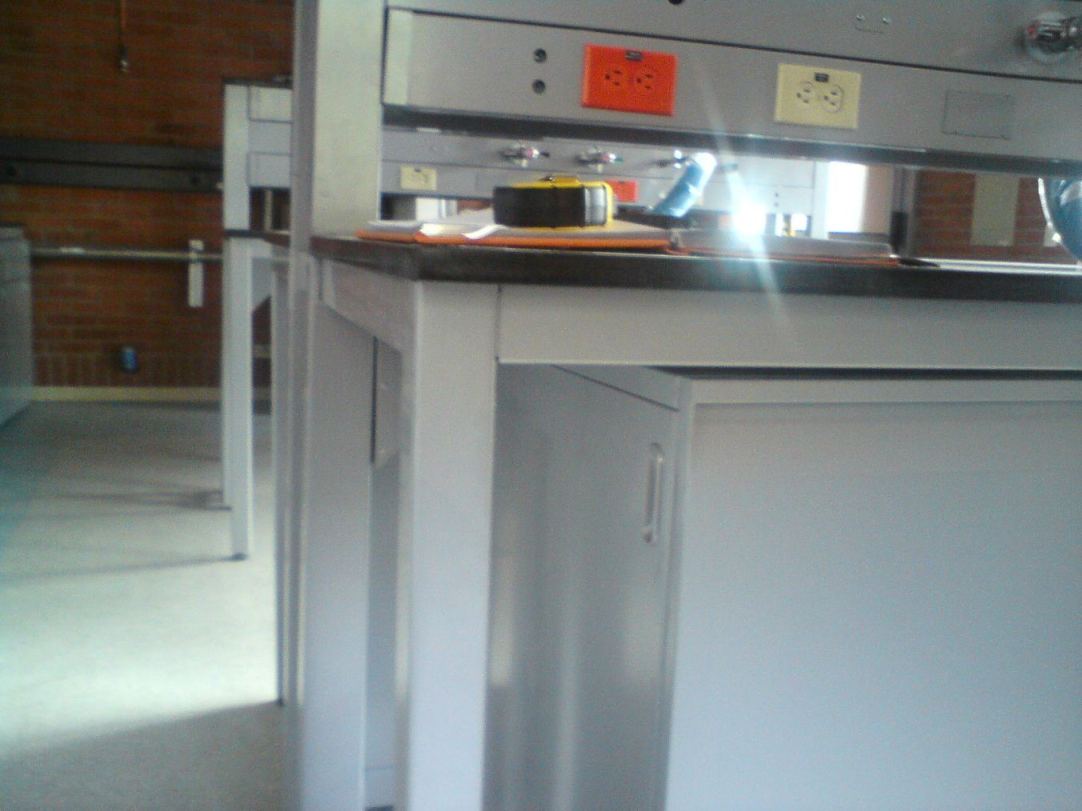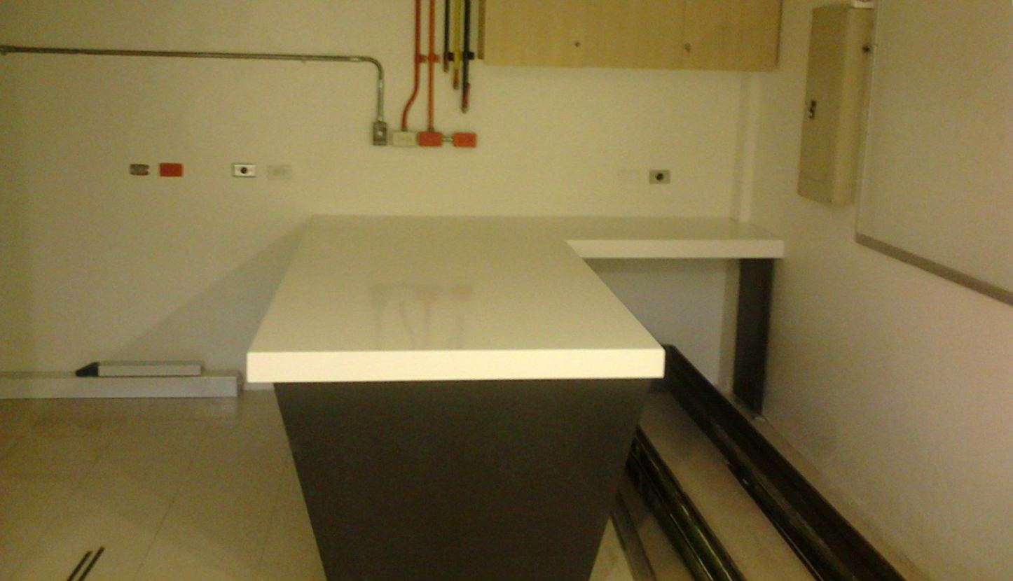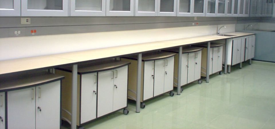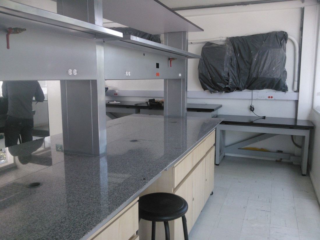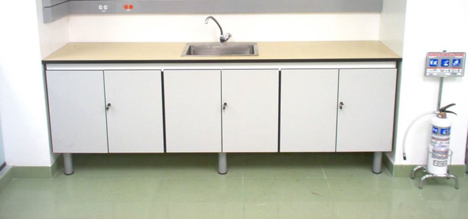 Muebles en lámina Cold Rolled, con fórmica especial con resistencia a químicos para laboratorios.