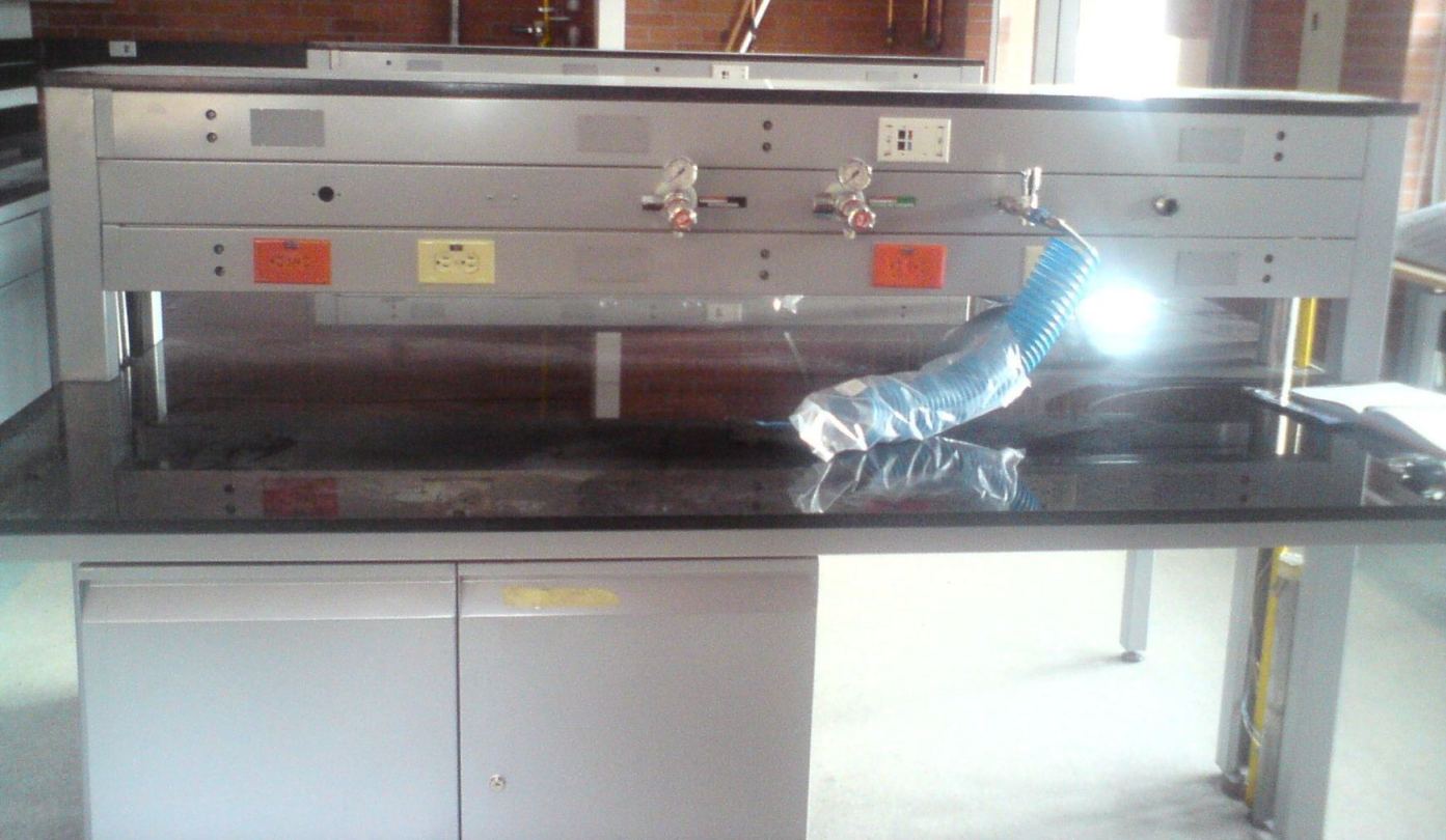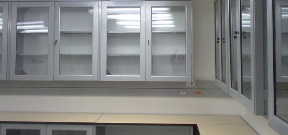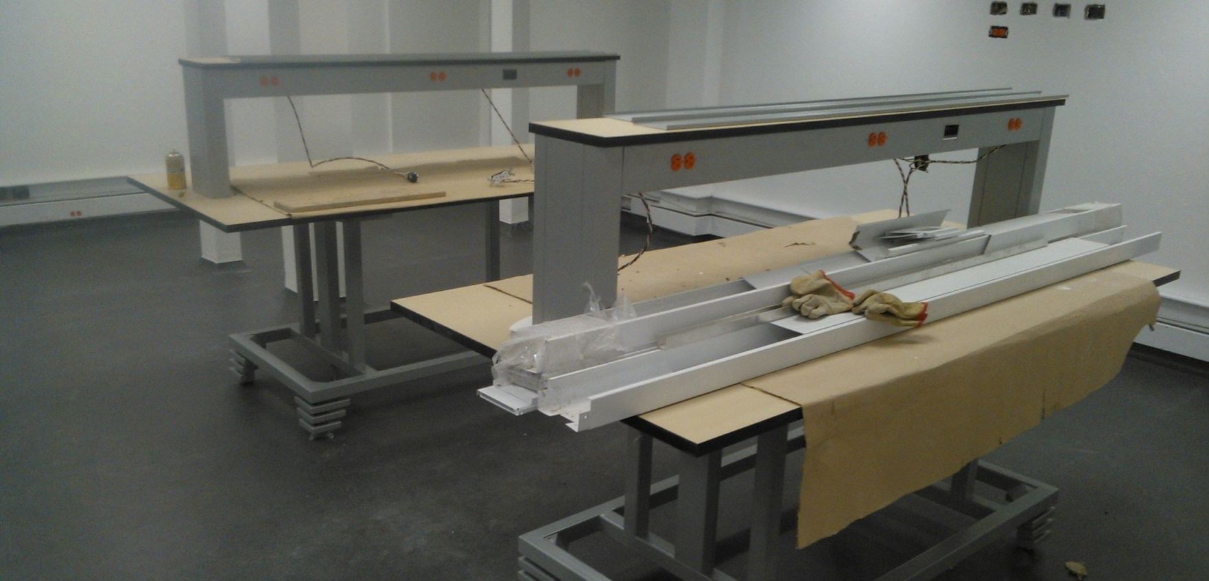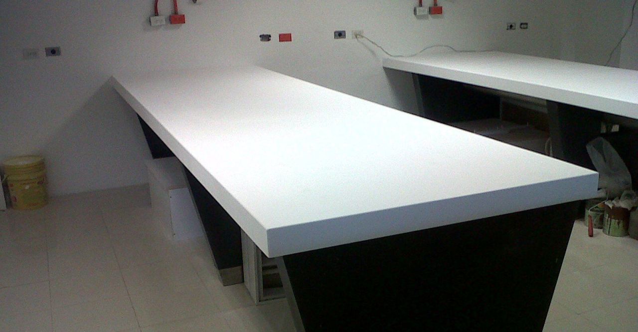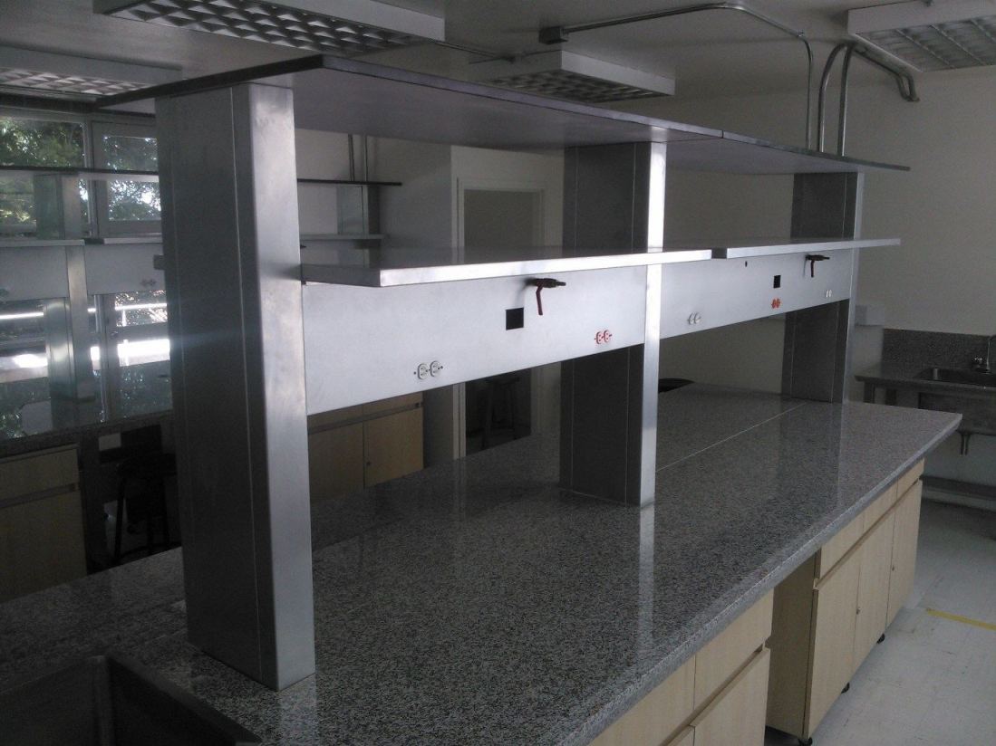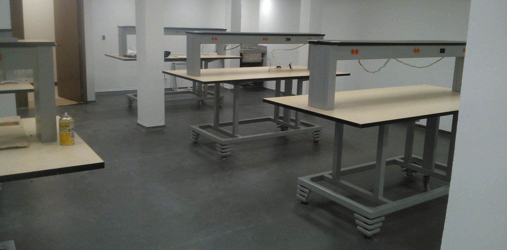 Muebles en lámina Cold Rolled, con fórmica especial con resistencia a químicos para laboratorios.