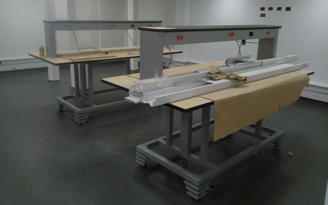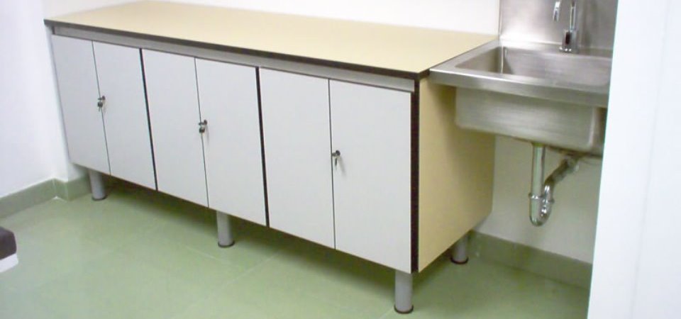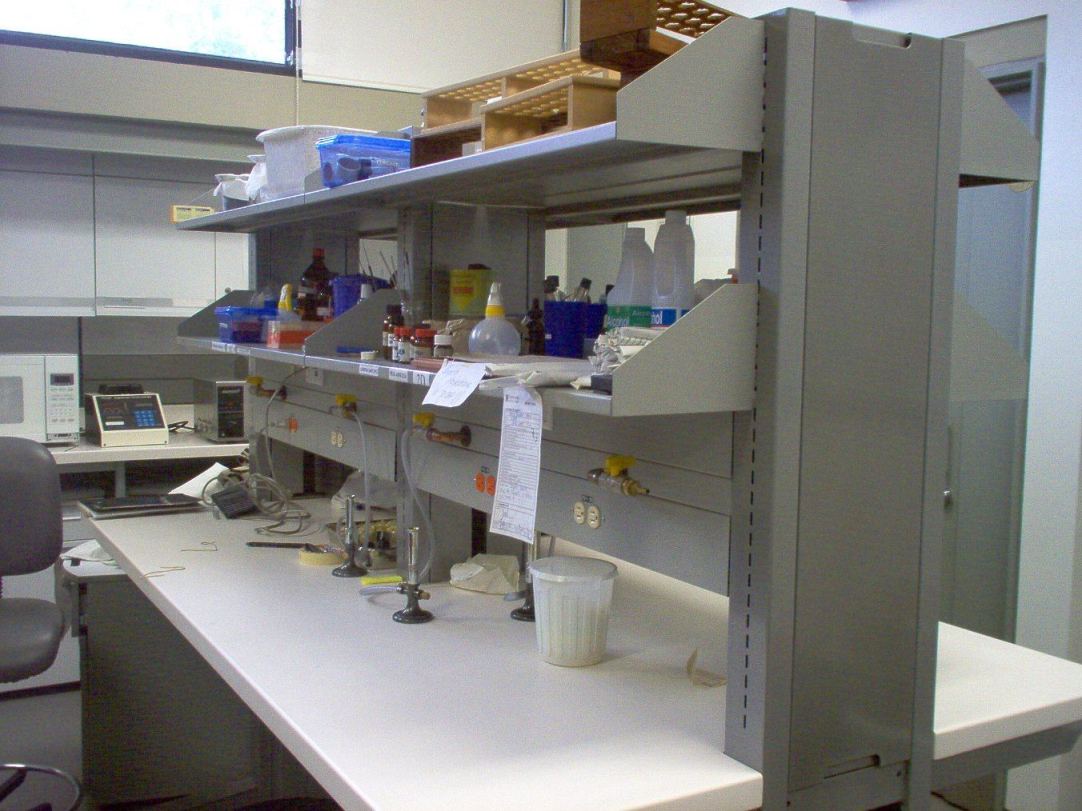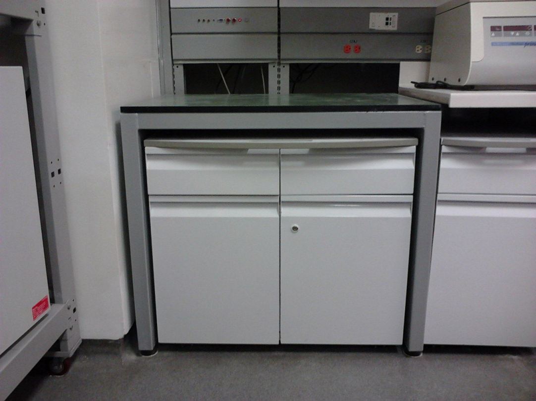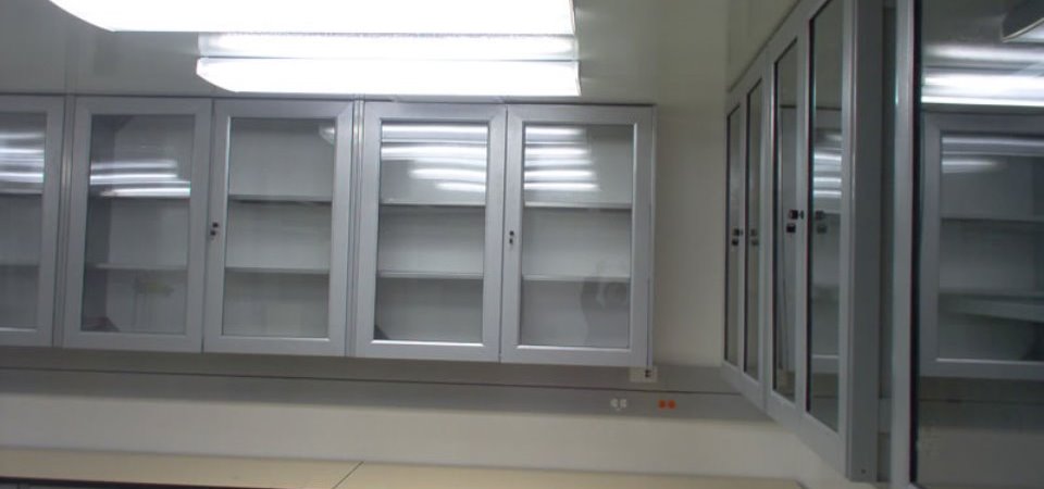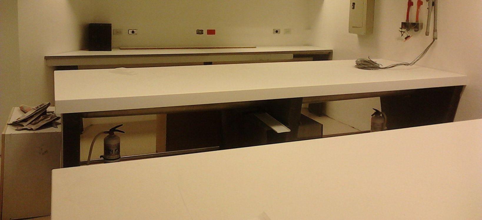 Muebles en lámina Cold Rolled, con fórmica especial con resistencia a químicos para laboratorios.