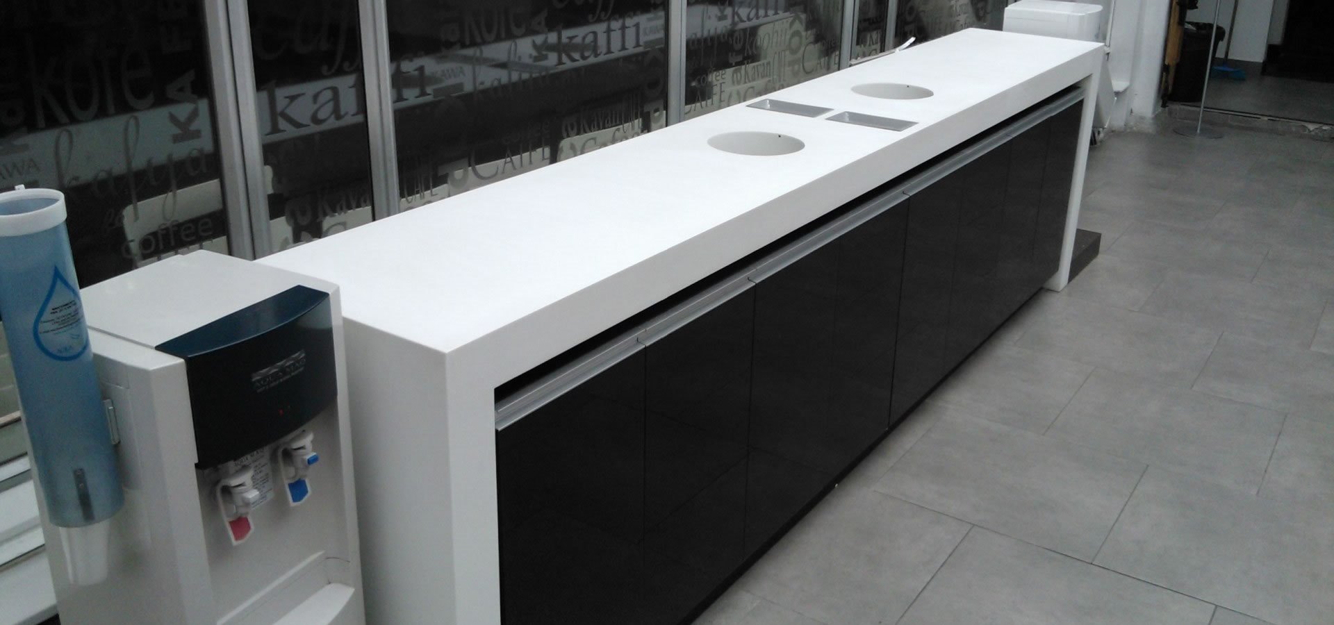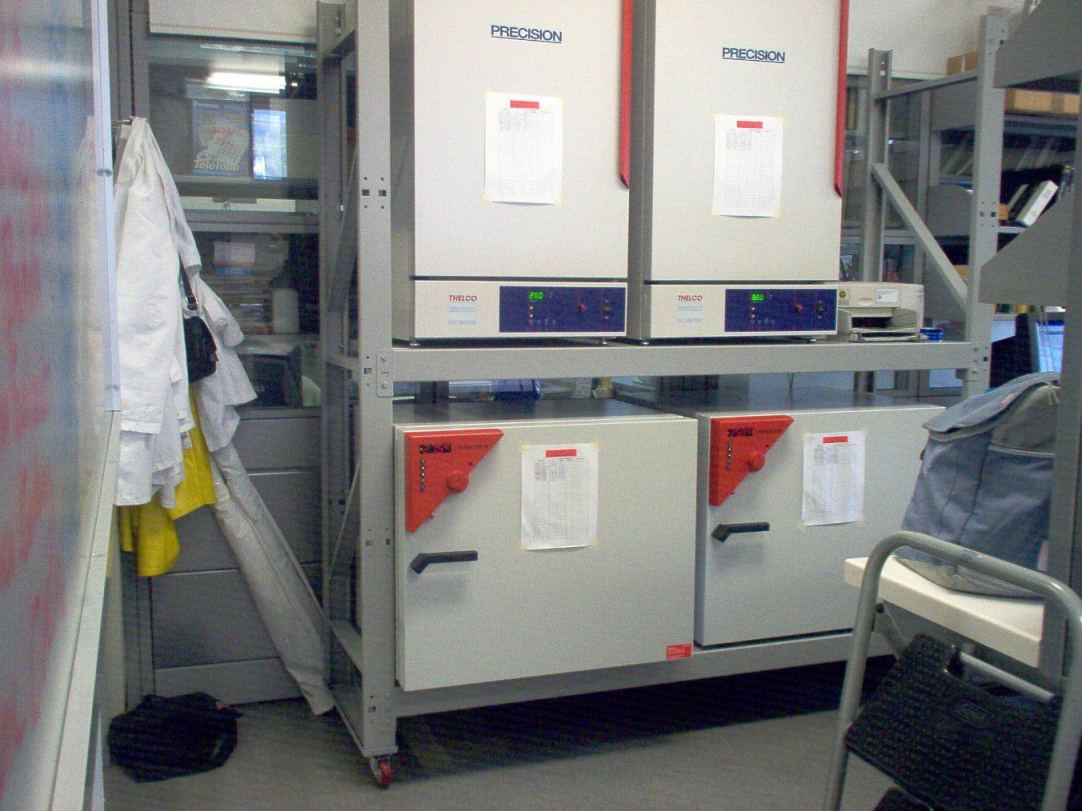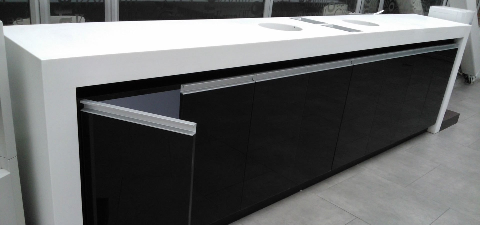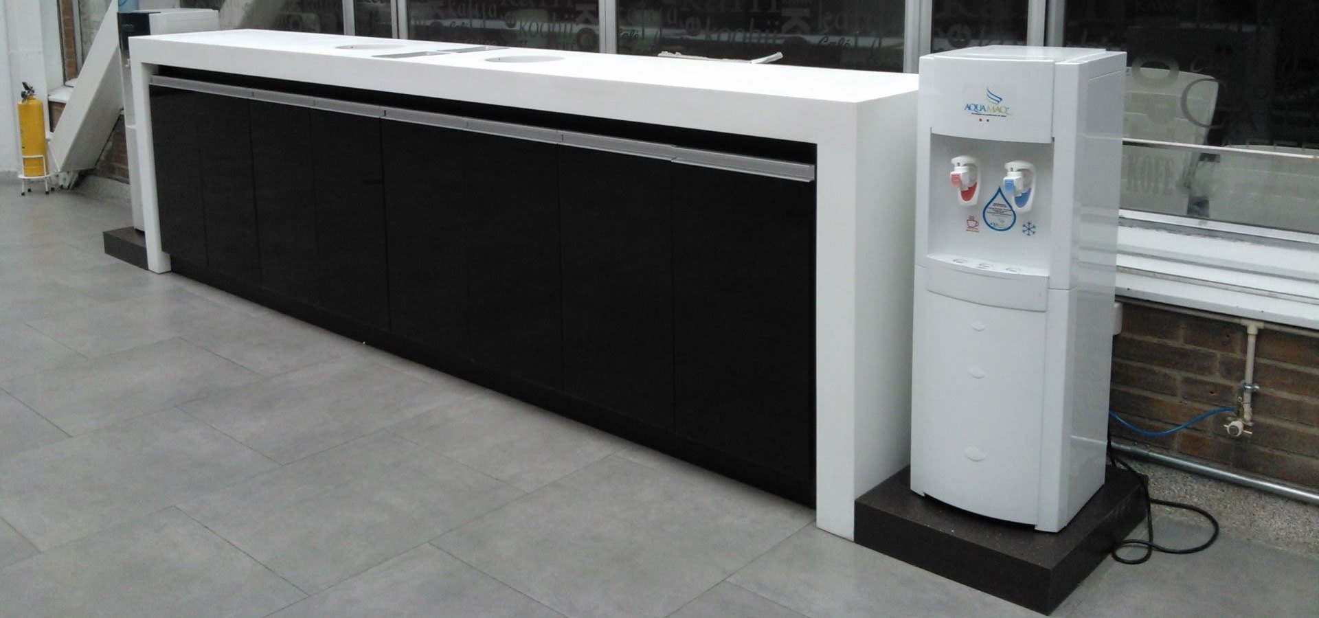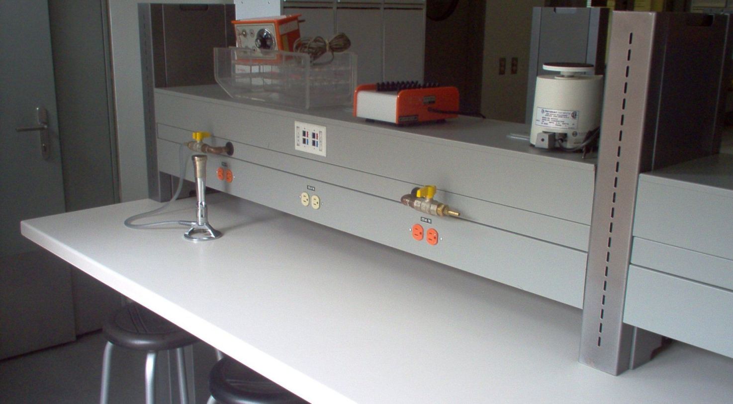 Muebles en lámina Cold Rolled, con fórmica especial con resistencia a químicos para laboratorios.