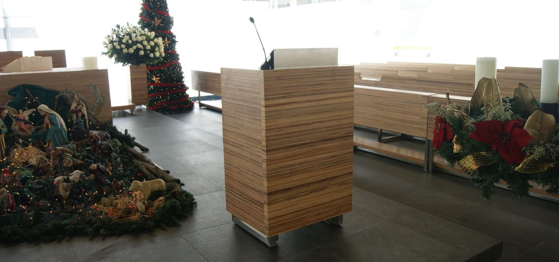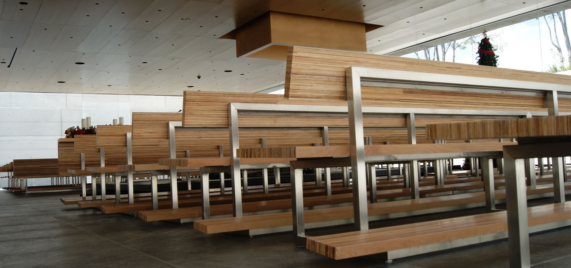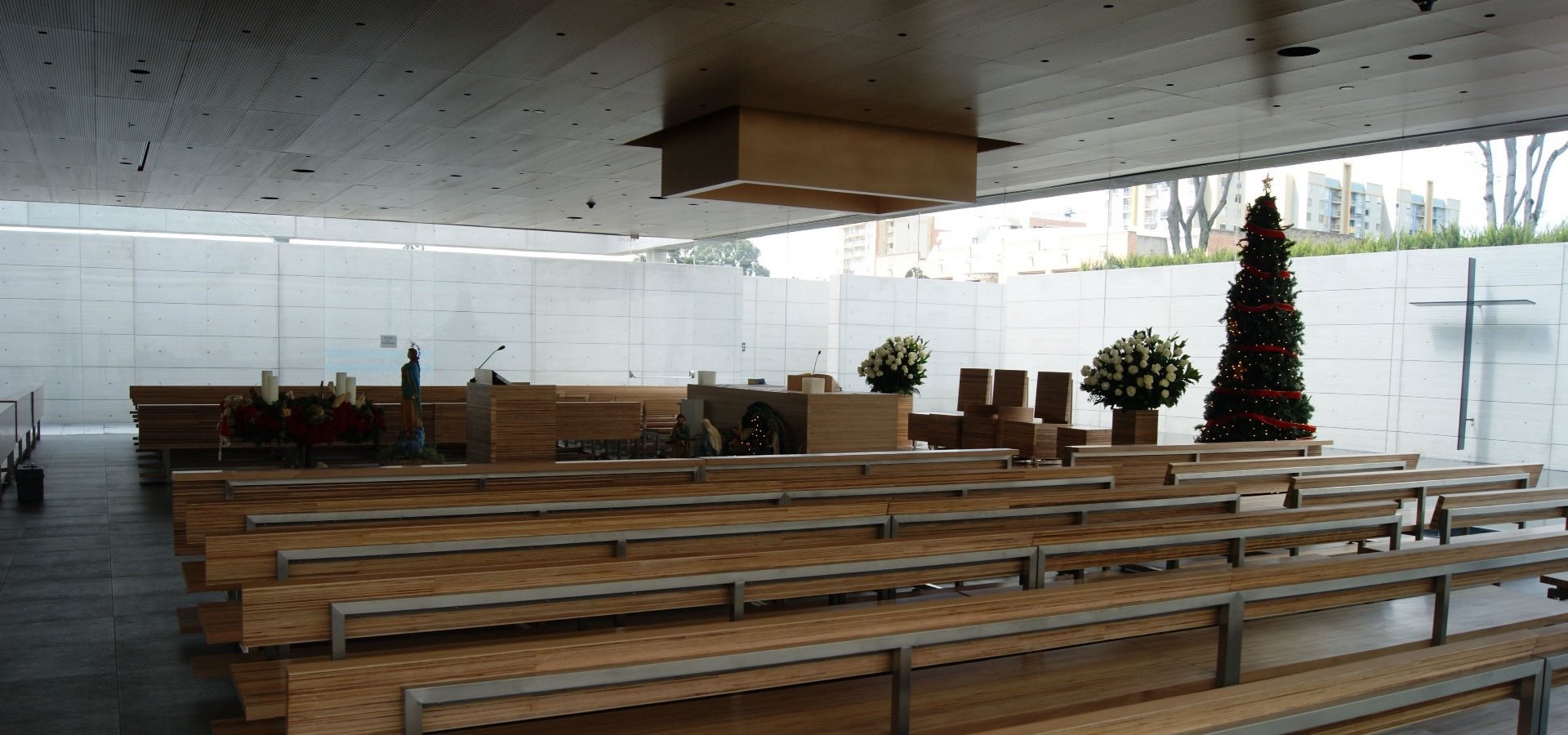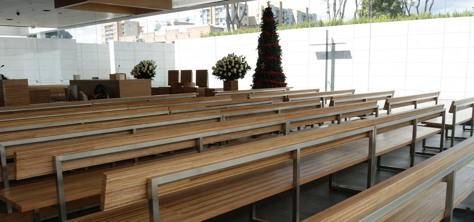 Fabricación e instalación de proyecto completo especial, capilla del Gimnasio Campestre. desde las bancas hasta el techo.