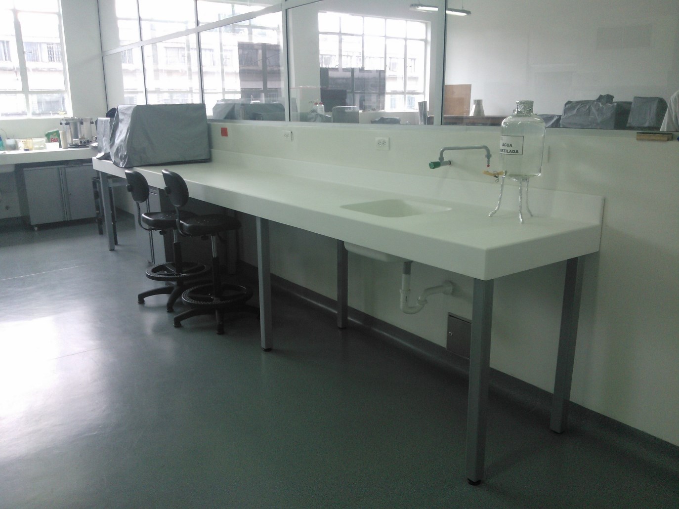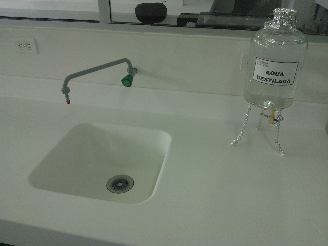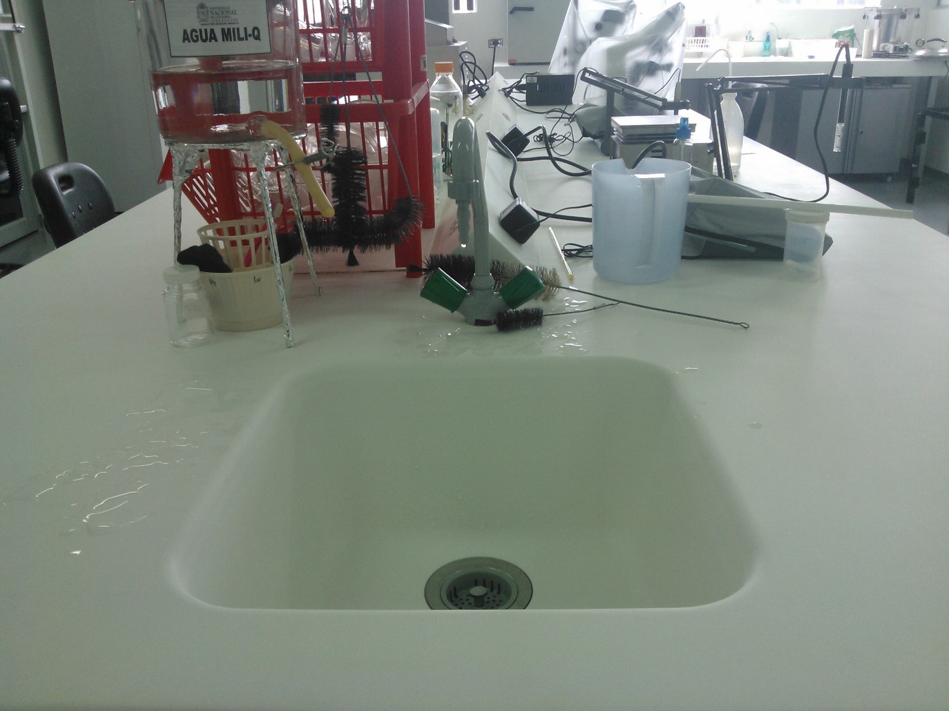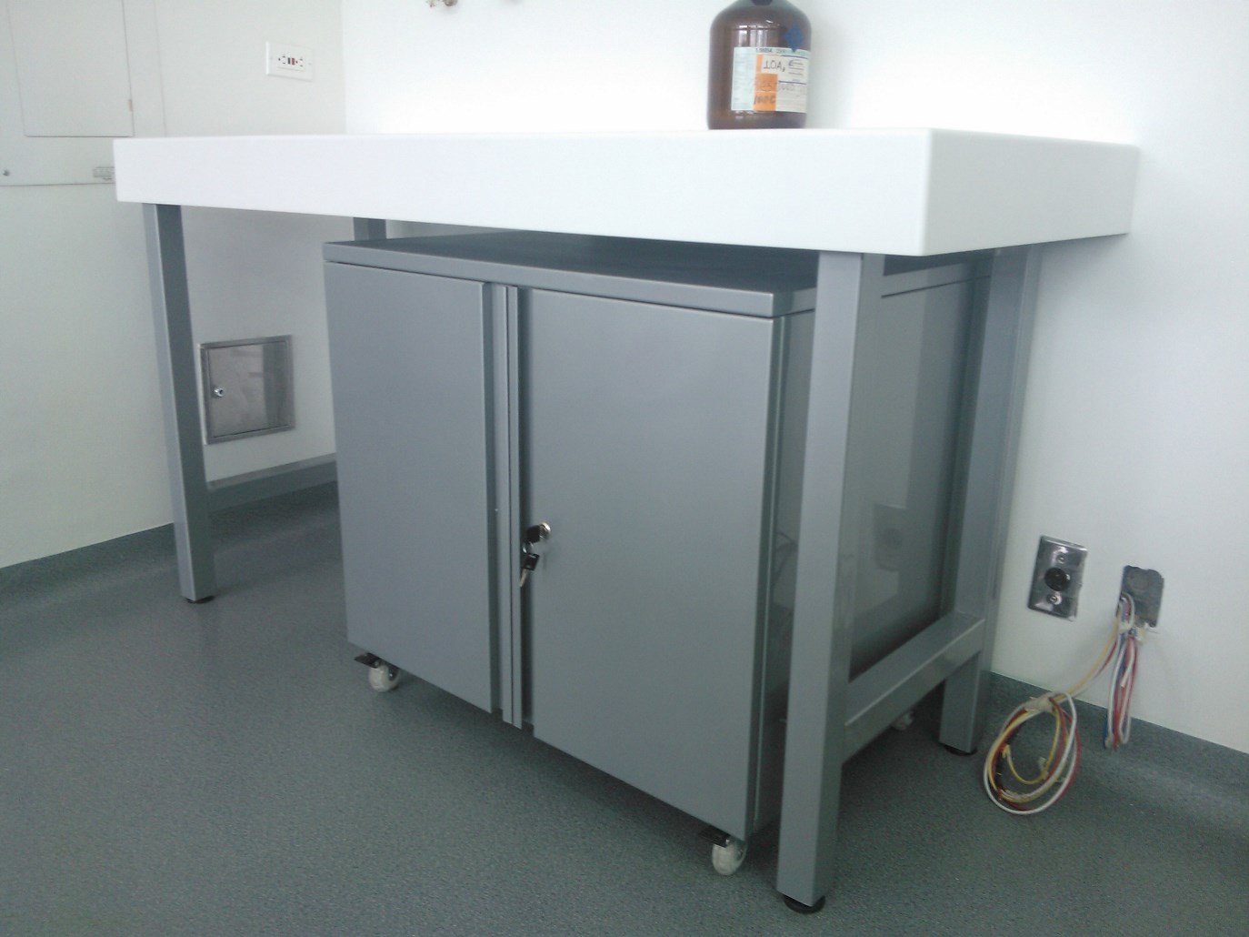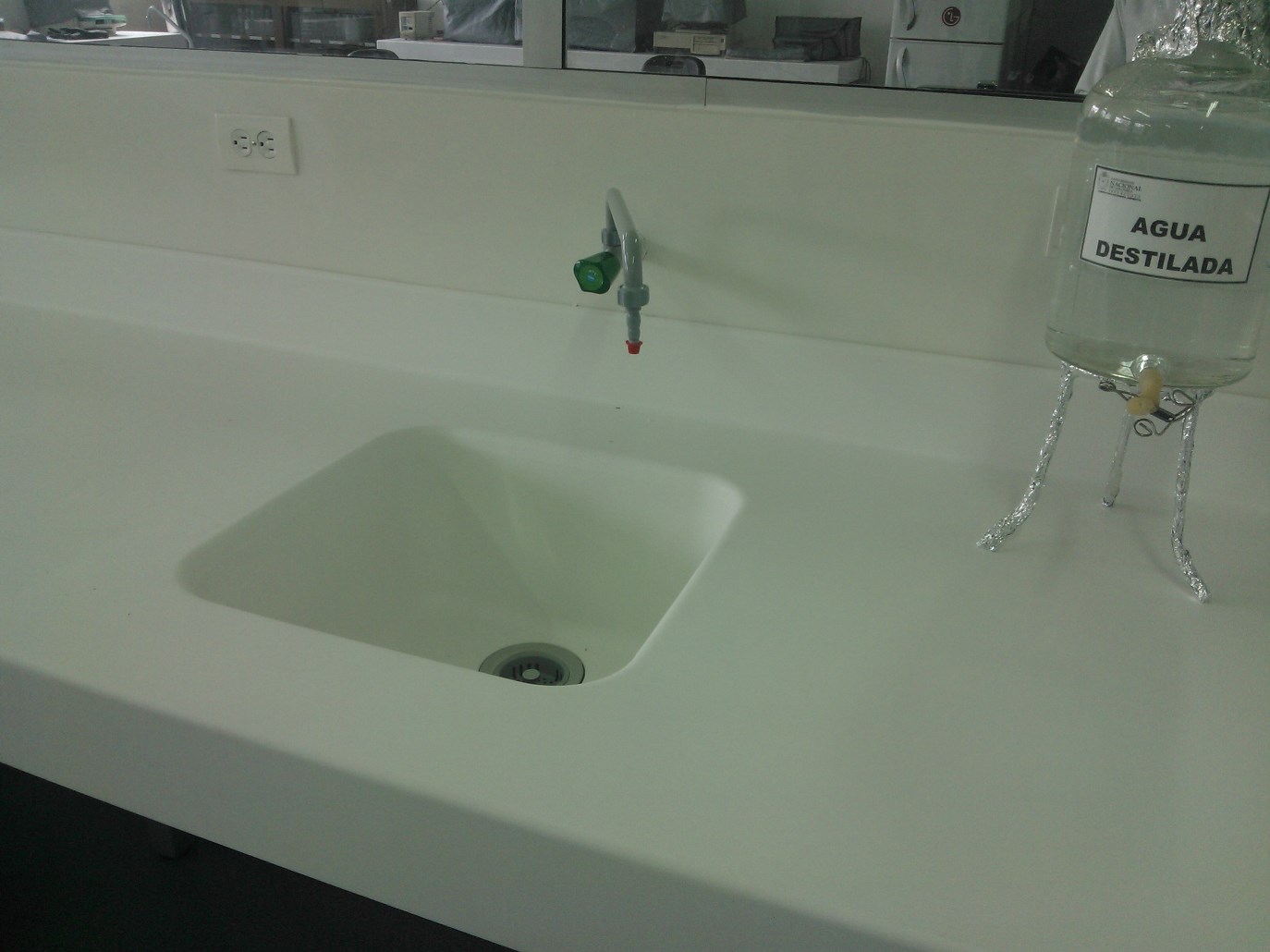 Muebles en lámina Cold Rolled, con fórmica especial o Corian con resistencia a químicos para laboratorios..