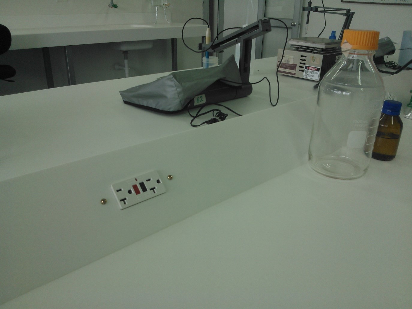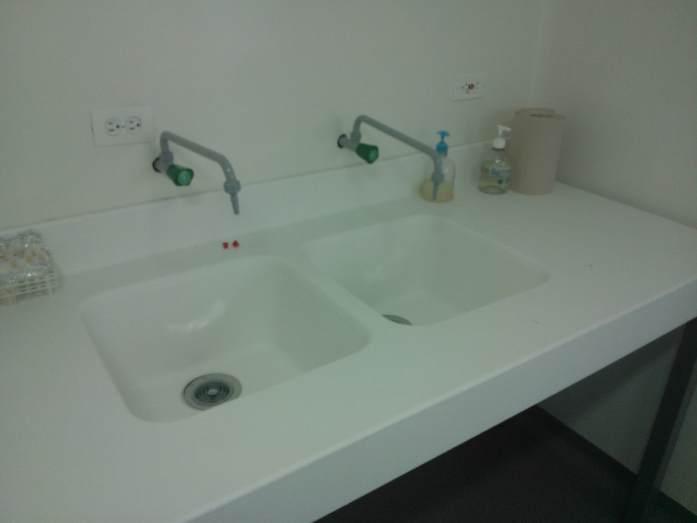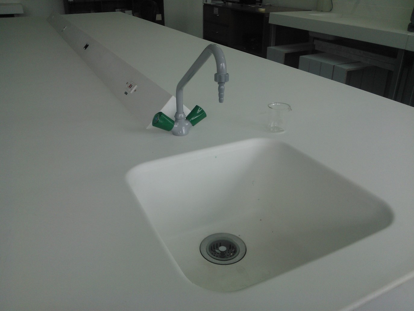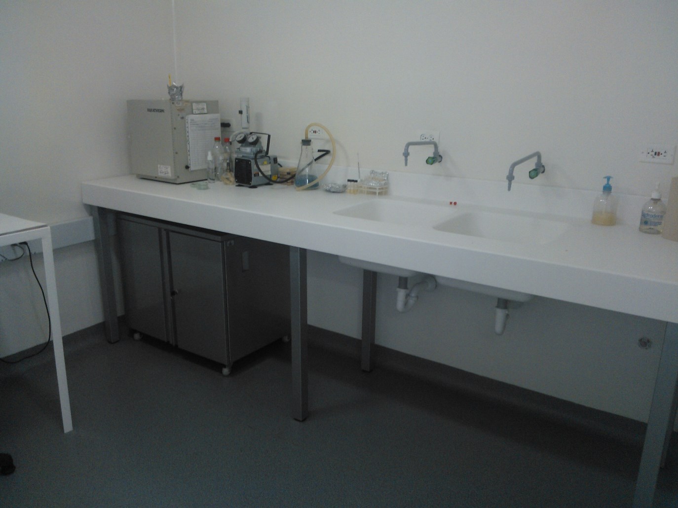 Muebles en lámina Cold Rolled, con fórmica especial o Corian con resistencia a químicos para laboratorios..